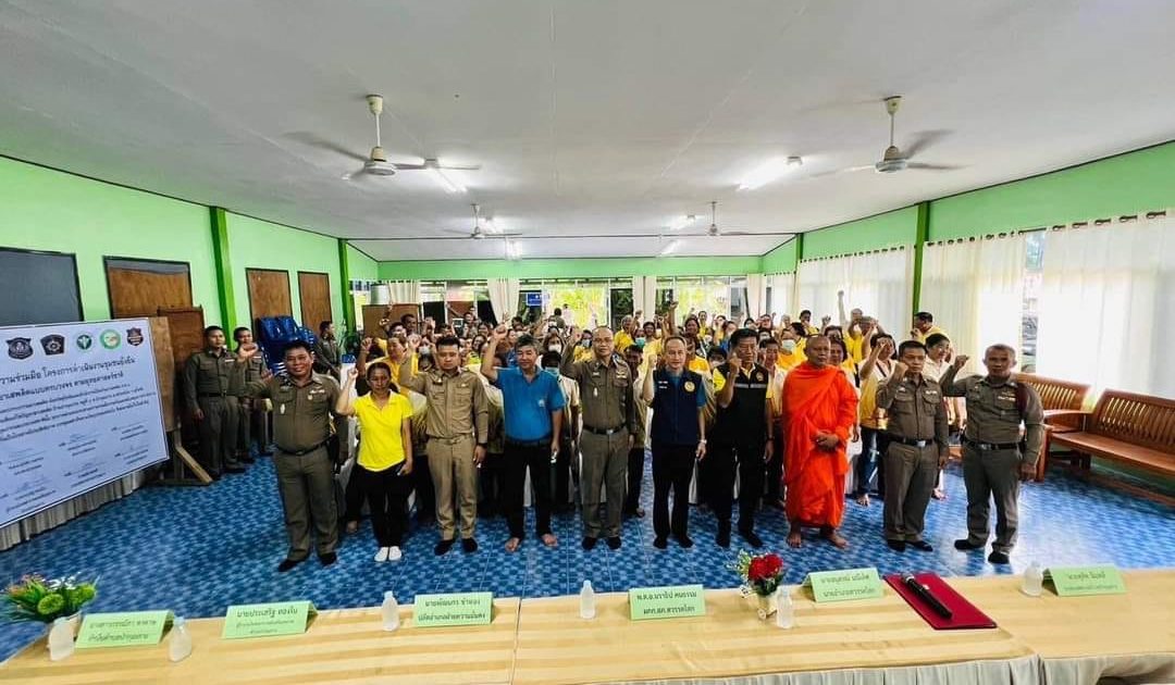 พร้อมด้วย ภาคีเครือข่าย ปลัดอำเภอฝ่ายความมั่นคงอำเภอสวรรคโลก,เจ้าอาวาสวัดท่าเกย,สาธารณสุขอำเภอสวรรคโลก,ผู้อำนวยการโรงพยาบาลส่งเสริมสุขภาพตำบลป่ากุมเกาะ,นายกเทศบาลตำบลป่ากุมเกาะ,กำนันตำบลป่ากุมเกาะ,ชุดปฏิบัติการชุมชนยั่งยืน ,อสม. และประชาชนภายในหมู่บ้านป่ากุมเกาะ ม.4 ต.ป่ากุมเกาะฯ ร่วมทำพิธีเปิดและลงนามในบึนทึกข้อตกลง (MOU) โครงการ ชุมชนบำบัดอย่างยั่งยืน ในพื้นที่แพร่ระบาดยาเสพติด ตามนโยบายเร่งด่วนของ รัฐบาล ประจำปีงบประมาณ 2567
