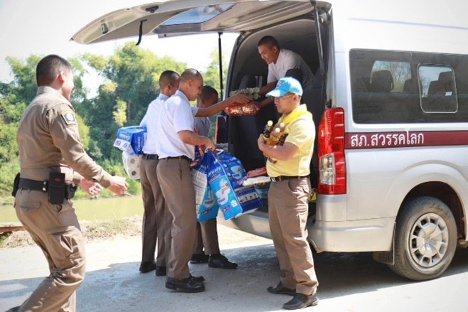 เมื่อวันที่ 11 กุมภาพันธ์ 2568 เวลาประมาณ 11.00 น. พ.ต.อ.นราธิป คนธรรม ผกก.สภ.สวรรคโลก ทำหน้าที่ กต.ตร. ร่วมกับคณะกต.ตร สภ.สวรรคโลก พร้อมข้าราชการตำรวจในสังกัด ชุดจิตอาสา ได้ร่วมทำบุญ บริจาคสิ่งของ เงินสด เพื่อนำไปซื้อ สิ่งของเครื่องใช้ อุปโภค และบริโภค โดยได้จัดทำโครงการจิตอาสา เยี่ยมผู้ป่วยติดเตียง โดยออกตรวจเยี่ยมพร้อมมอบสิ่งของเครื่องใช้ ในการดำรงชีพ ราษฎร หมู่ที่ 4 ต.คลองกระจง อ.สวรรคโลก จ.สุโขทัย