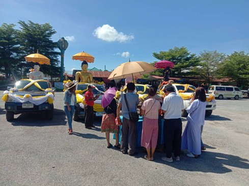 ได้อำนวยความสะดวกการจราจรและดูแลการจราจร ขบวนแห่พระประธานอุโบสถ วัดทุ่งมหาชัย ม.3 ต.คลองมะพลับ อ.ศรีนคร จ.สุโขทัย เพื่อให้ชาวบ้านและผู้มีจิตรศรัทธาได้ร่วมทำบุญและปิดทอง องค์พระ จากบริเวณหน้าวัดคุ้งวารี มายังตลาดสดเทศบาลเมืองสวรรคโลก