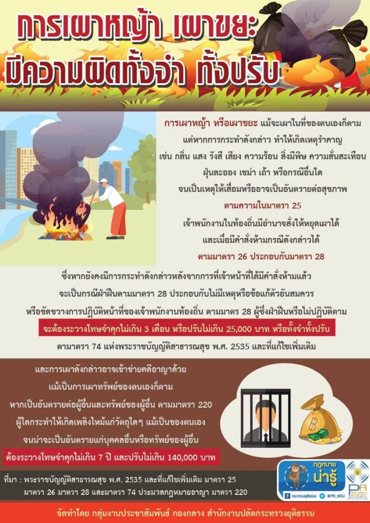 ช่วงนี้เป็นฤดูเก็บเกี่ยวข้าว เกษตรกร ควรงดการเผาตอซังข้าว และวัสดุเหลือใช้ทางการเกษตร เพื่อลดปัญหามลพิษจากหมอกควัน ฝุ่นละอองขนาดเล็ก (PM2.5)