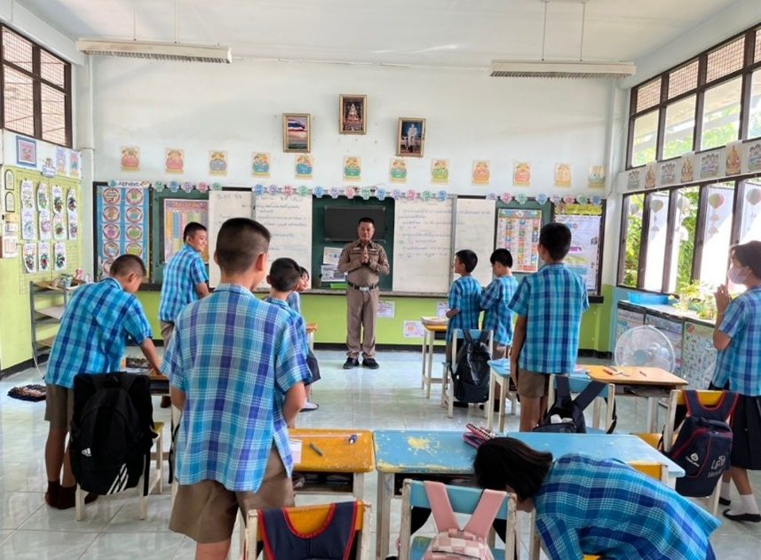 ด.ต.ทวิช จันทร์เกสร ครูตำรวจ D.A.R.E. ดำเนินการสอนโครงการการศึกษาเพื่อต่อต้านการใช้ยาเสพติดและความรุนแรงในเด็กนักเรียน (D.A.R.E.ประเทศไทย) ณ โรงเรียนบ้านไม้งาม ม.4 ต.ปากน้ำ อ.สวรรคโลก จ.สุโขทัย