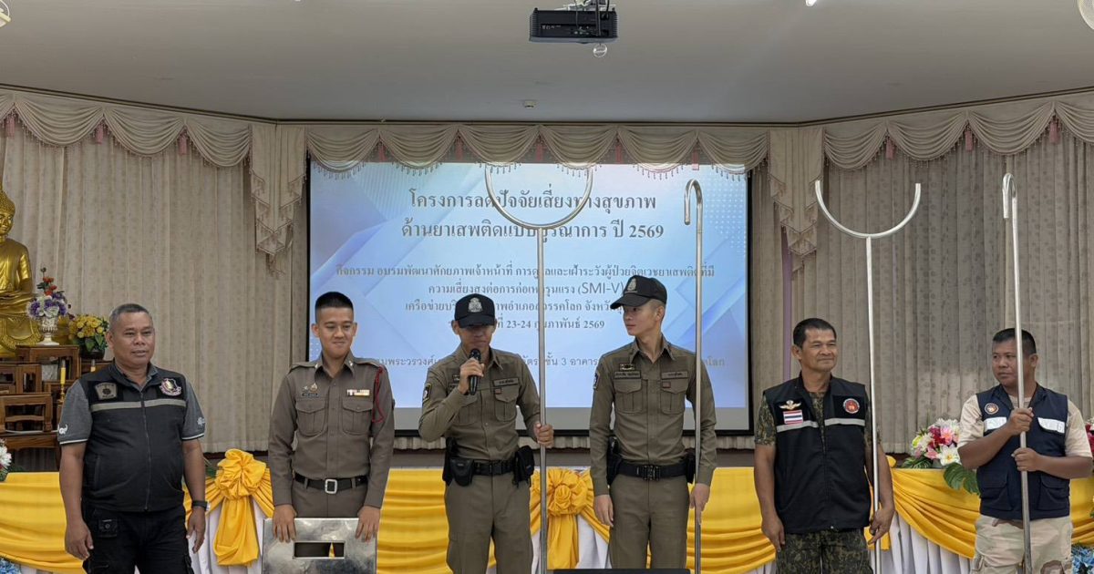 วันที่ 24 ก.พ.2569 เวลา 09.30 น. พ.ต.ต.ณรงค์ ฟักโต สวป.(ชส.)สภ.สวรรคโลก พร้อมชุดชมส. เป็นวิทยากรบรรยายให้ความรู้ การระงับเหตุบุคคลคลุ่มคลั้ง “โครงการลดปัจจัยเสี่ยงทางสุขภาพ ด่านยาเสพติดแบบบูรณาการ ปี 2569″ ณ ห้องประชุมพระวรวงศ์เธอพระองค์เจ้าวิมลฉัตร โรงพยาบาลสวรรคโลก