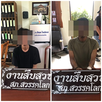 จับกุมผู้ต้องหา 2 ราย อยู่บ้านเลขที่ 120/29 ม.1 ต.ในเมือง อ.สวรรคโลก จ.สุโขทัย กระทำความผิดฐาน“ประมว