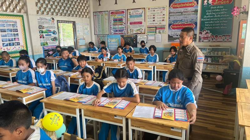 ครูตำรวจ D.A.R.E. ดำเนินการสอนโครงการการศึกษาเพื่อต่อต้านการใช้ยาเสพติดและความรุนแรงในเด็กนักเรียน (