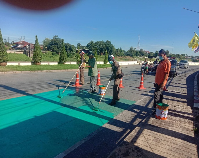 ชุดปฏิบัติการจราจรได้ร่วมกับเทศบาลเมืองสวรรคโลก ทำการทาสีเส้นหยุดรถบริเวณแยกไฟแดง บริเวณแยกสะพาดนพัฒ
