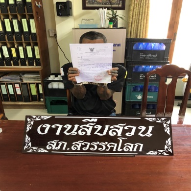 นำตัว ผู้ต้องหา 1 ราย อยู่บ้านเลขที่ 65/4 ม.1 ต.คลองยาง อ.สวรรคโลก จ.สุโขทัย พร้อมของกลางและเอกสารที