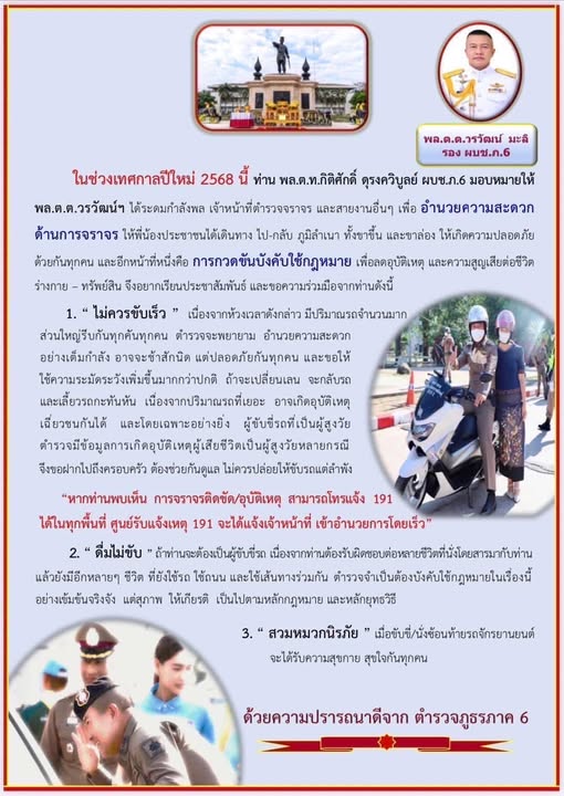 สำนักงานตำรวจแห่งชาติห่วงใยพี่น้องประชาชน เฝ้าระวังภัยบนท้องถนนในช่วงเทศกาลปีใหม่ 2568 พร้อมบังคับใช