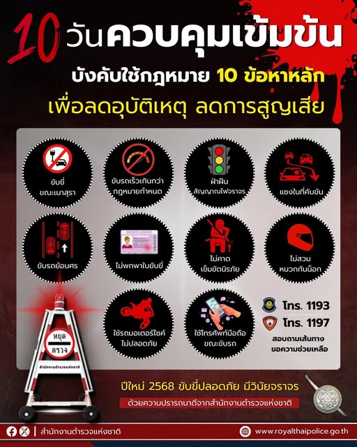 10 วันคุมเข้ม 10 ข้อหาหลัก เพื่อลดอุบัติเหตุบนท้องถนน