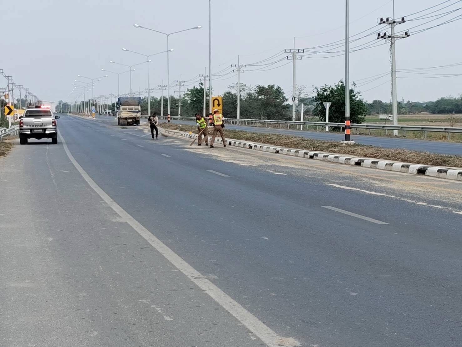 วันที่ 8 เม.ย. 2568 ตร.จราจร สภ.สวรรคโลก ช่วยกันเก็บกวาดทำความสะอาดถนนจากอุบัติเหตุรถบรรทุกข้าวเปลือ