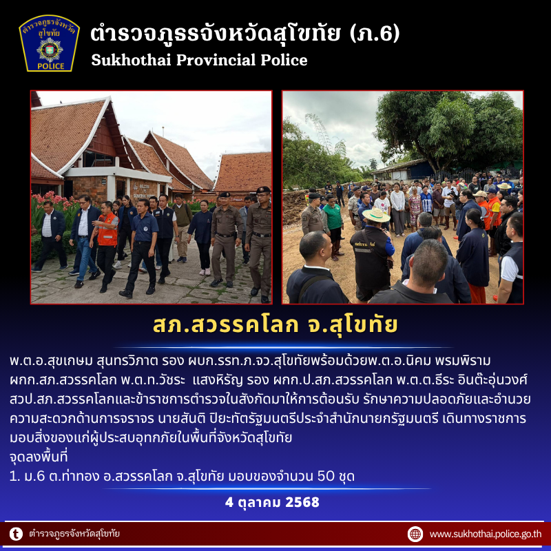 เรียน ผู้บังคับบัญชา ภายใต้การอำนวยการ สั่งการของ พ.ต.อ.นิคม พรมพิราม ผกก.สภ.สวรรคโลก พ.ต.ท.วัชระ แส