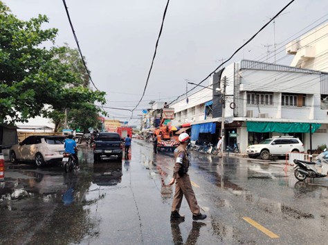 ตั้งแต่เวลา 15.00 น. ร.ต.อ.สมโภช คงนา รองสว.จร.สภ.สวรรคโลก พร้องชุด สายตรวจจราจร อำนวยความสะดวกด้าน