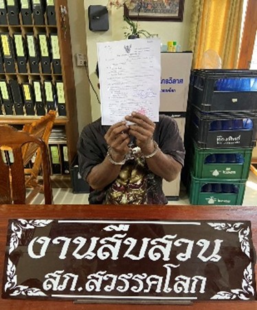 เมื่อวันที่ 13 ก.พ.2568 จับกุมผู้ต้องหา 1 ราย อยู่บ้านเลขที่ 40 ถ.เทศบาลดดำริ 4 ต.เมืองสวรรคโลก อ.สว