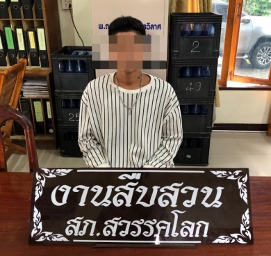 นำตัวผู้ต้องหา 1 ราย บ้านเลขที่ 85/2 ม.8 ต.ในเมือง อ.สวรรคโลก จ.สุโขทัย พร้อมของกลาง ให้พนักงานสอบสว