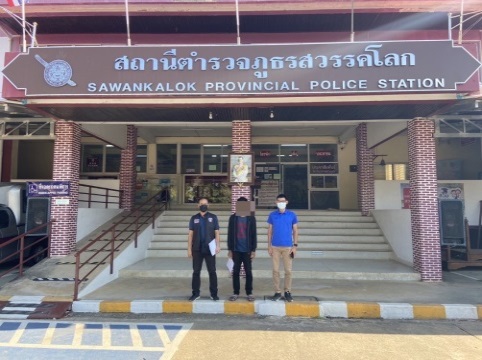 จับกุมผู้ต้องหา 1 ราย อยู่บ้านเลขที่ 34/1 ม.6 ต.ท่าทอง อ.สวรรคโลก จ.สุโขทัย กระทำความผิดฐาน “ยักยอก”